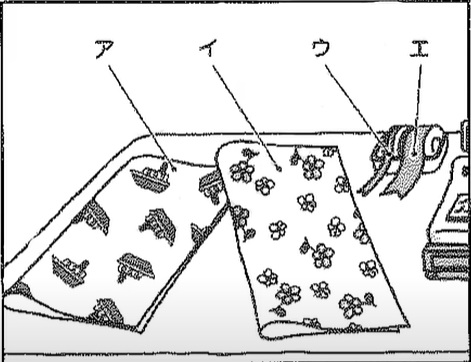 男:はい、 包む紙は二種類あります。 こちらの船の絵と花の絵とどちらがいいでしょうか。