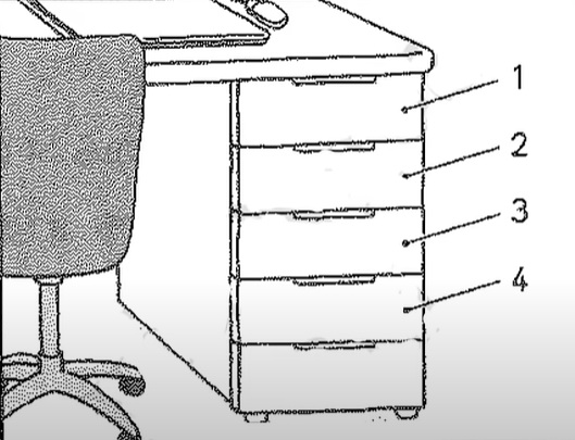 男: ええと、たぶん引き出しの下から二番目に入っていると思う。 茶色い封筒に入っているから、すぐわかると思うよ。