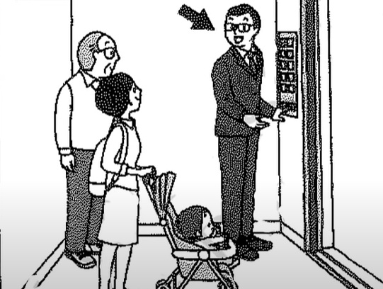 Tham khảo: レベーターのなかです。他の人が降りた後で降ります。何と言いますか。